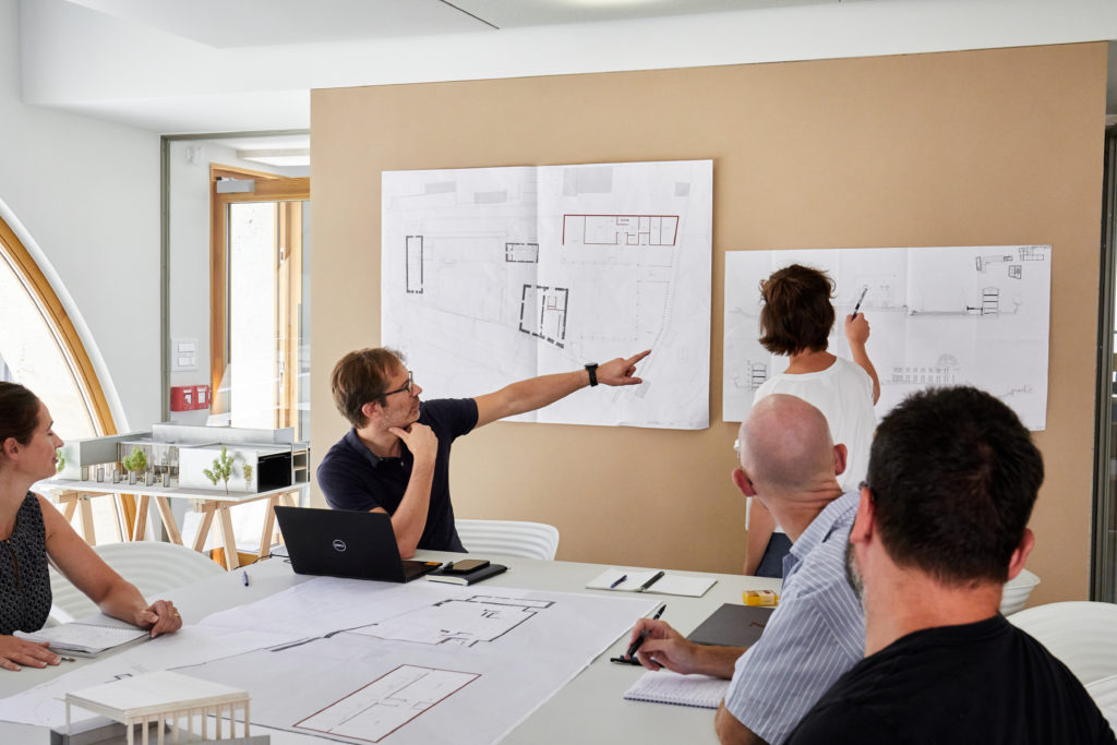 L’ambition première et permanente de l’agence est de concevoir une architecture à vivre. Pour cela, elle s’attache à établir un dialogue dès le programme avec le maître d’ouvrage, à rester proche de celles et ceux qui bâtissent et à écouter les usagers. Pour construire des espaces qui rassemblent les exigences de confort et de bien-être contemporains, elle est attentive au travail de la matière, de la lumière naturelle et de la couleur. Cette écoute et cette proximité, à toutes les étapes de la conception, se double de l’envie de s’approcher au plus près de la fabrication et du chantier. Savoir construire avec celles et ceux qui construisent, c’est la volonté de construire bien : être architecte maître d’œuvre, comme un artisan qui façonne. L’autre conviction majeure de l’équipe, dont une part importante de la production s’insère dans des sites construits, est d’entrer en résonance avec un lieu et l’histoire qu’il raconte. Elle bénéficie d’un savoir-faire de longue date pour faire converser le projet et son environnement, d’un goût partagé pour la réhabilitation de bâtiments et de sites patrimoniaux jusqu’aux réalisations remarquables du XXème trop souvent malmenées et plus largement pour rendre le patrimoine ordinaire performant, sensible et confortable. Enfin, depuis ses débuts, l’engagement environnemental de l’agence vient de son attitude par rapport au site dans lequel les projets s’immiscent. L’observation fine du lieu et de ses caractéristiques croisée avec les compétences techniques des architectes en matière de Qualité Environnementale du Bâtiment, la conduit naturellement à concevoir et réaliser des espaces et des formes bienveillantes pour leurs utilisateurs. L’agence évolue aujourd’hui en tant qu’atelier pluridisciplinaire au service du projet d’architecture, qui repose sur une écoute sensible des différents savoir-faire, le renoncement aux solutions toutes faites, et un engagement de tous les acteurs dans une vision sociétale et écoresponsable de la conception, de la construction et de la vie d’un bâtiment.