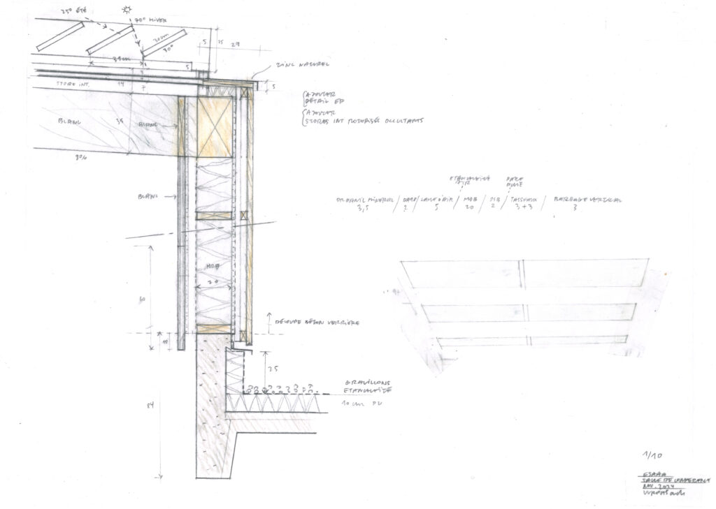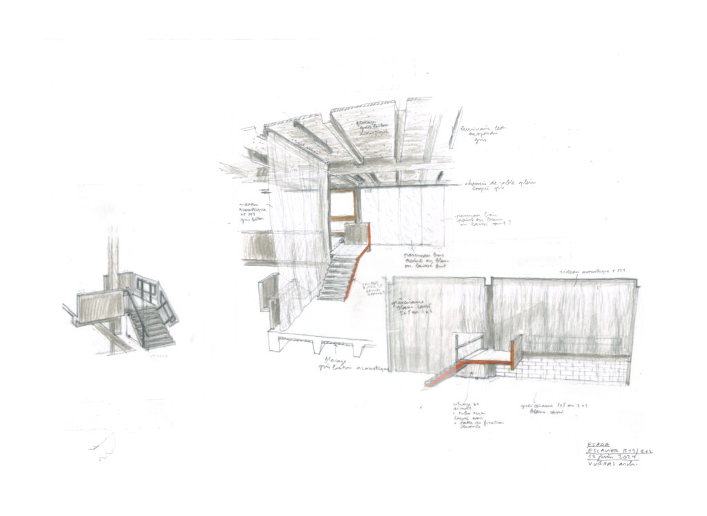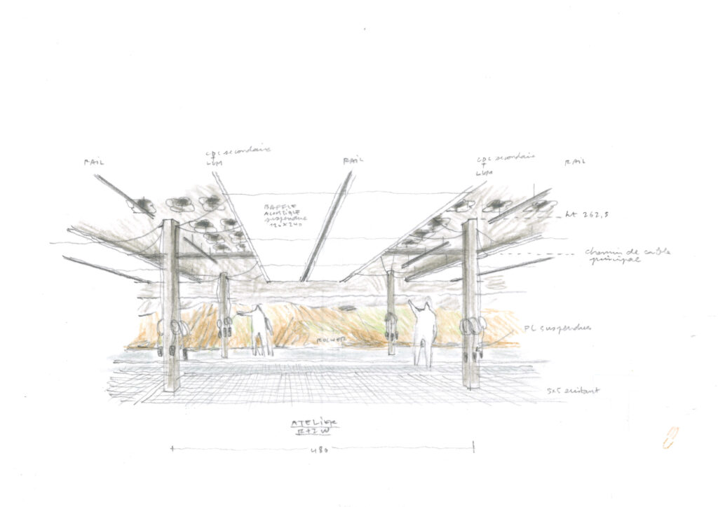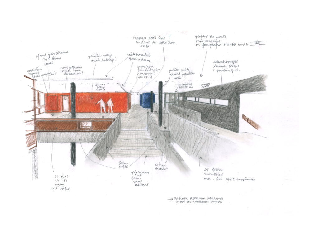 Tout ce potentiel remarquable s’est néanmoins terni avec les années, marqué par une usure fonctionnelle et thermique qui dessert autant ses utilisateurs que son patrimoine. Pour redonner au site cohérence et vitalité, nous sommes venus nous positionner en intermédiaires discrets, entre le présent du bâtiment dont il faut transcrire les principes modernes, et le futur de l’école d’art, en quête de confort et de modularité.