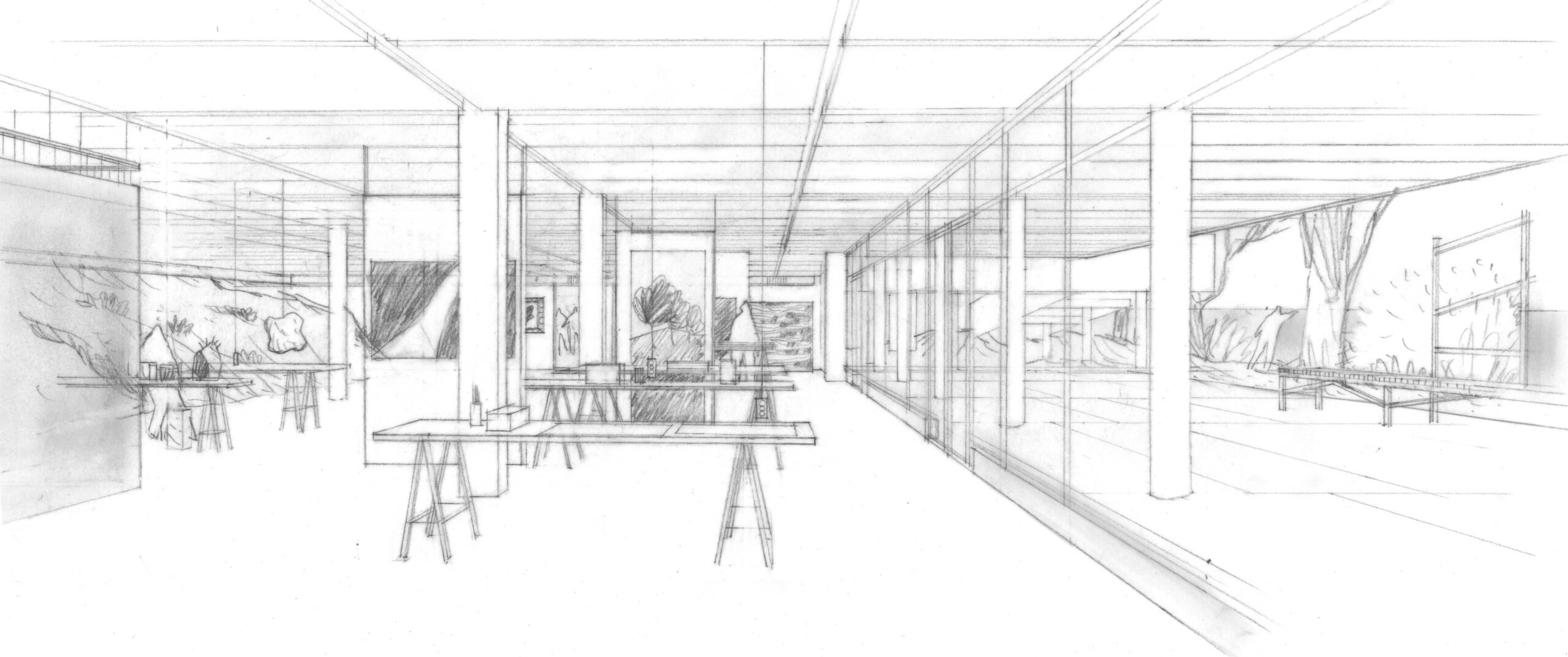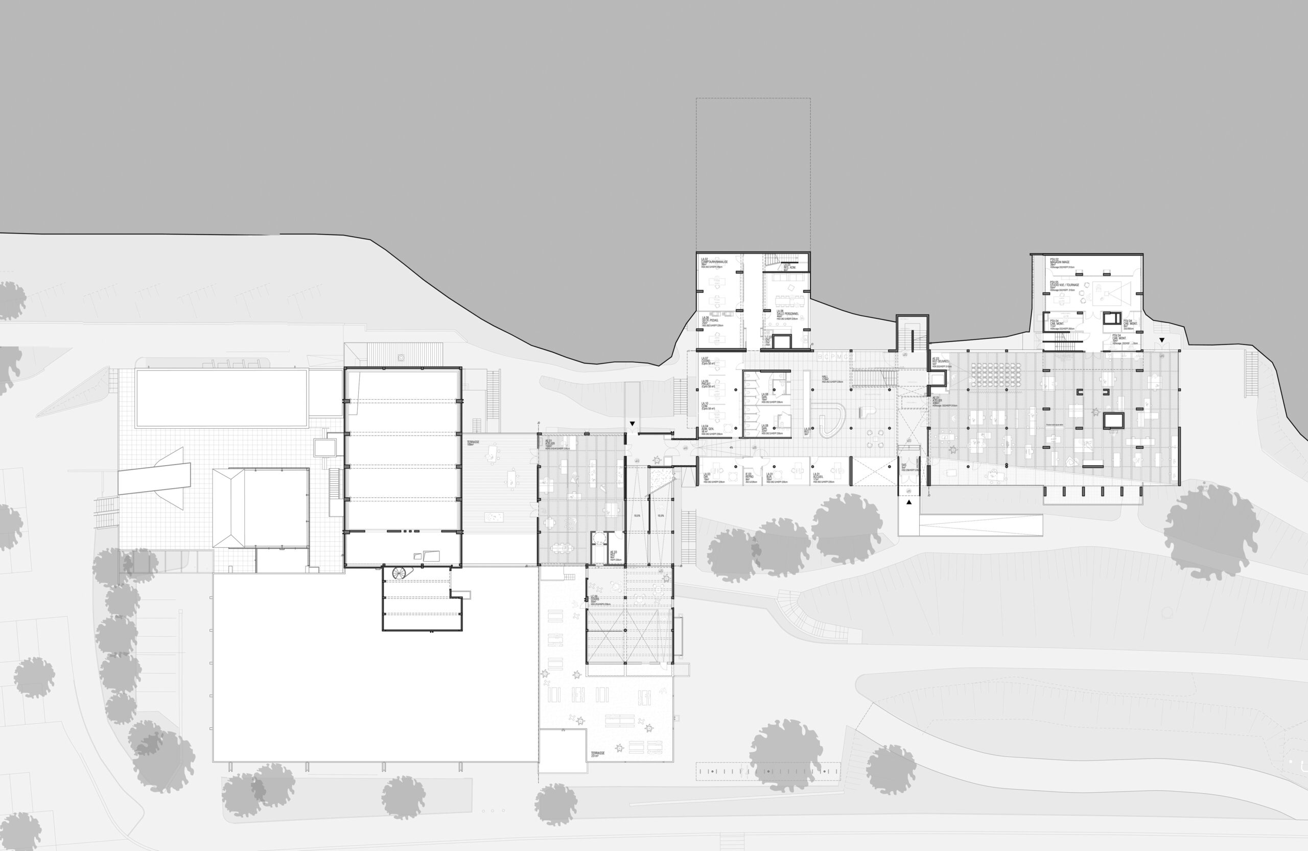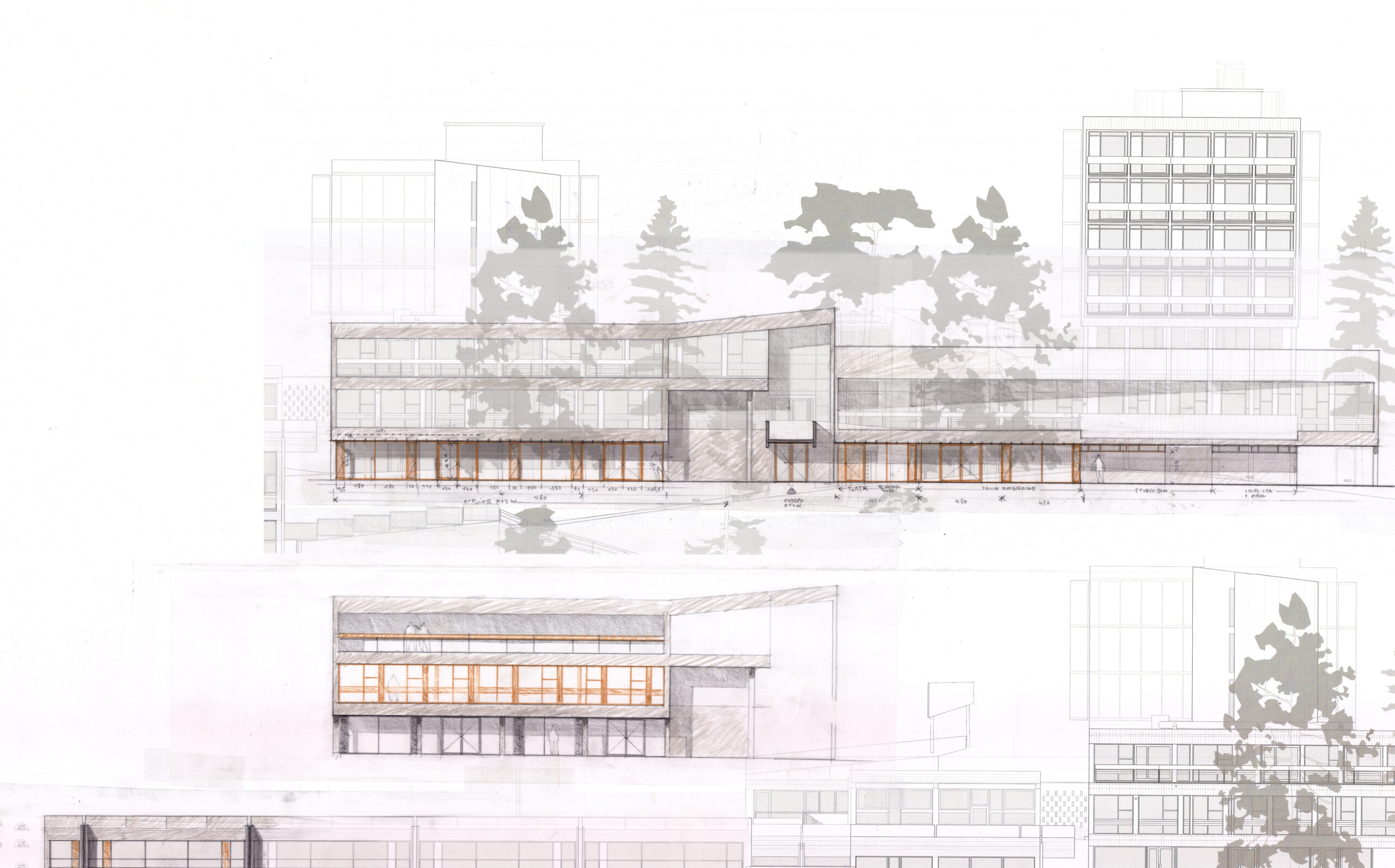 Tout ce potentiel remarquable s’est néanmoins terni avec les années, marqué par une usure fonctionnelle et thermique qui dessert autant ses utilisateurs que son patrimoine. Pour redonner au site cohérence et vitalité, nous sommes venus nous positionner en intermédiaires discrets, entre le présent du bâtiment dont il faut transcrire les principes modernes, et le futur de l’école d’art, en quête de confort et de modularité.