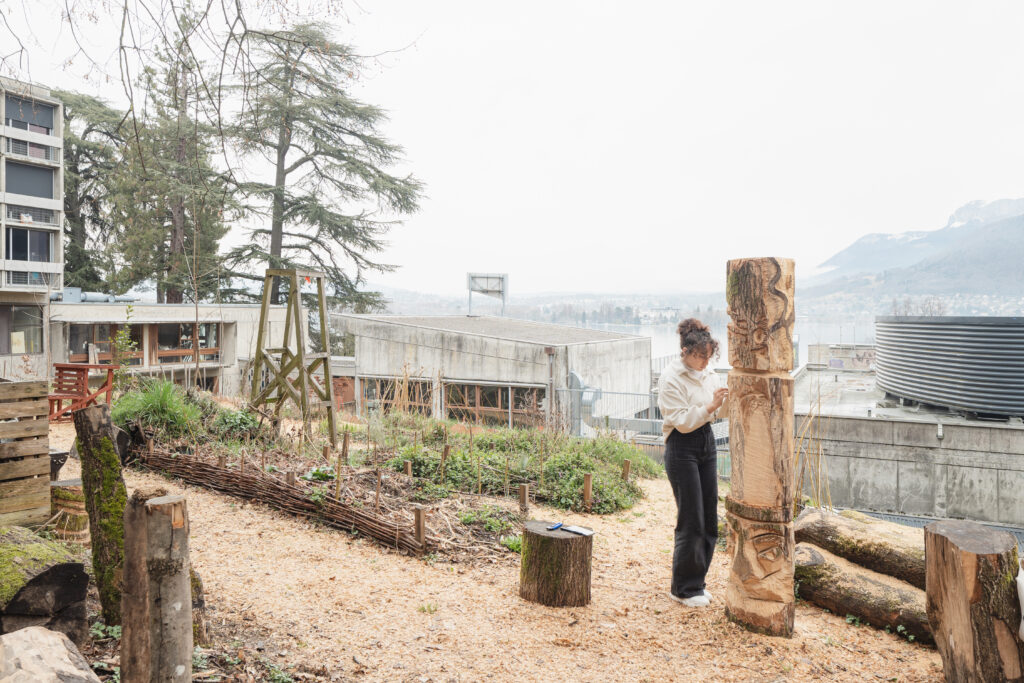 Les multiples cheminements permis par ces espaces imbriqués, la lumière naturelle distillée à travers les ouvertures qui offrent à tous les niveaux des vues imprenables sur l’horizon du lac d’Annecy et des vues plus confidentielles sur la forêt du Semnoz, constituent des sources inépuisables d’inspiration pour les étudiant.e.s de l’ESAAA, qui se sont appropriés les lieux et y expriment au quotidien leur créativité.