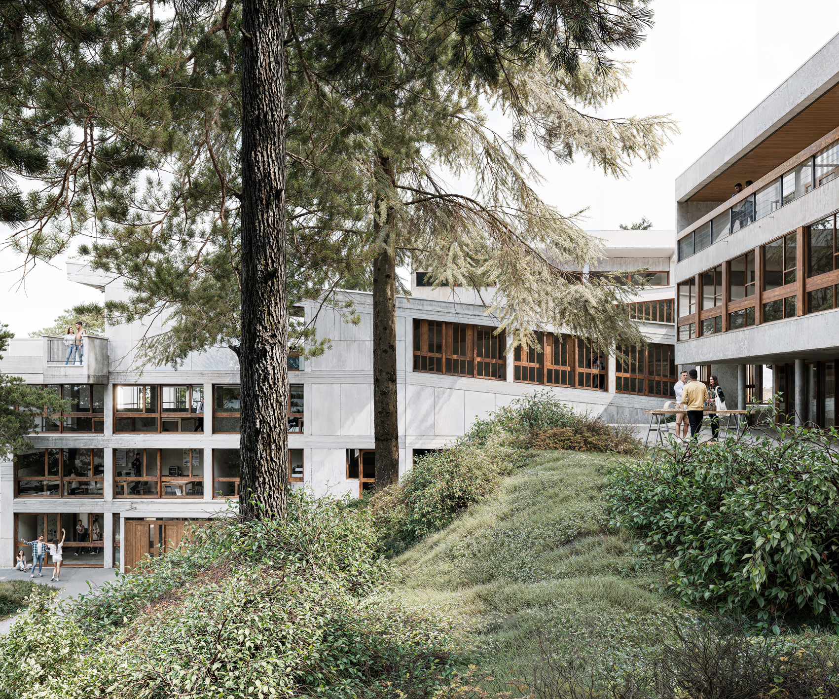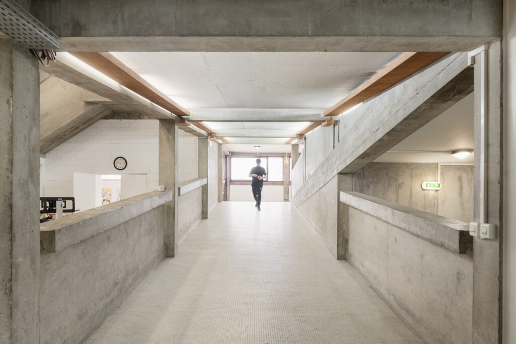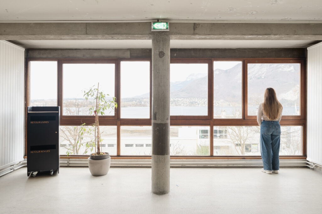 La matérialité brute de l’ensemble entre en résonance avec la richesse spatiale de ce lieu voué à la jeunesse, qui, comme un symbole, est aujourd’hui occupé par l’École Supérieure d’Arts Annecy Alpes.