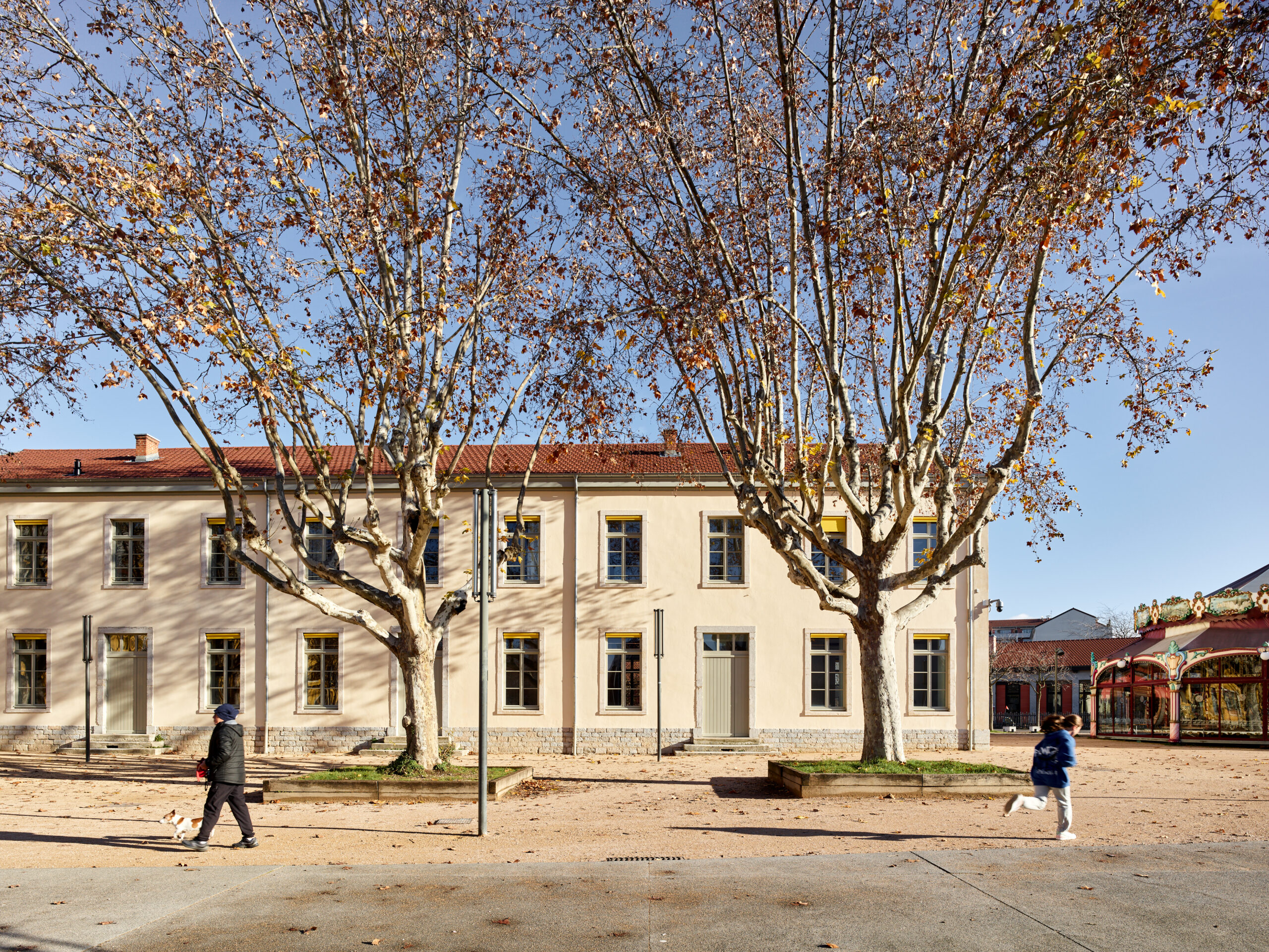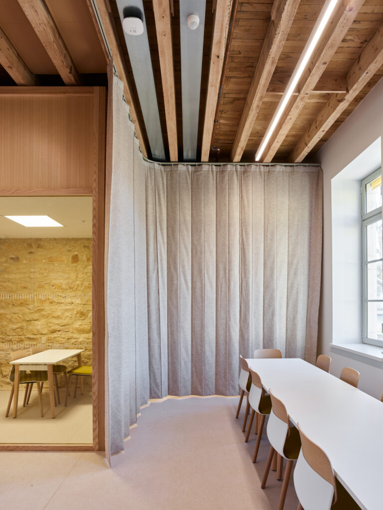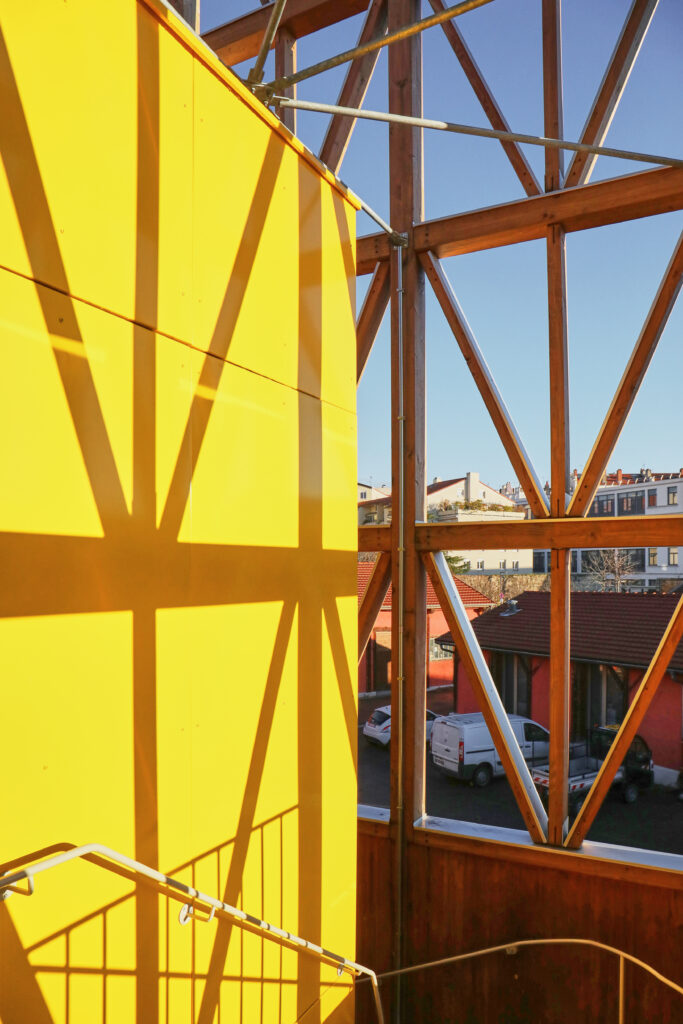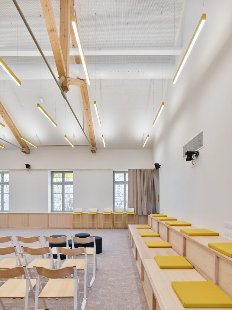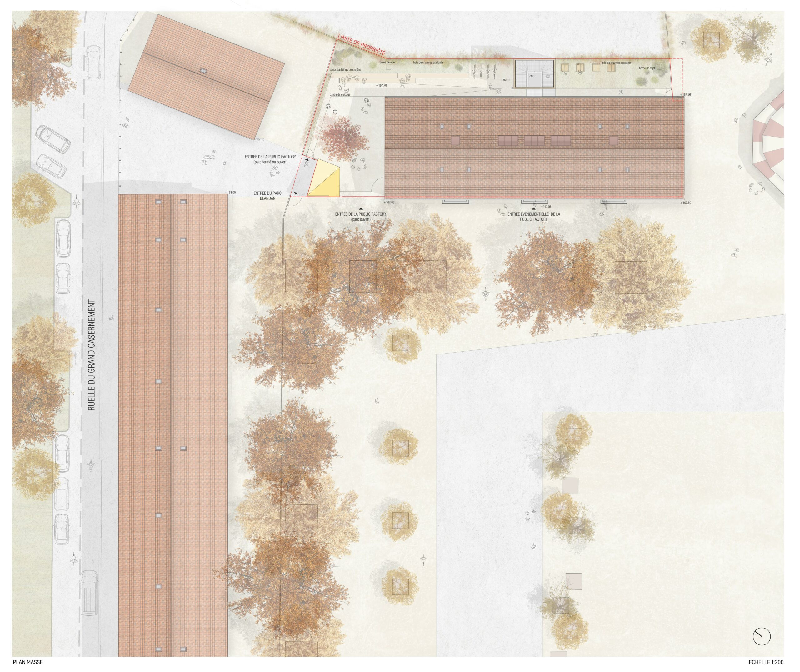Ces échanges vertueux, alliés aux potentialités de l’ancien bâtiment 07, nous ont conduit à proposer une réhabilitation sobre, essentielle, réalisée au maximum à partir du déjà-là. Le bâtiment patrimonial est restauré, les façades historiques retrouvent leur modénature, à la fois dans les teintes et les matières. Face à la grande esplanade du parc, la Public Factory affirme fièrement, sobrement et sans faux semblant sa mutation d’usage, comme un lieu ouvert, au service du débat, de la créativité et de l’excellence.