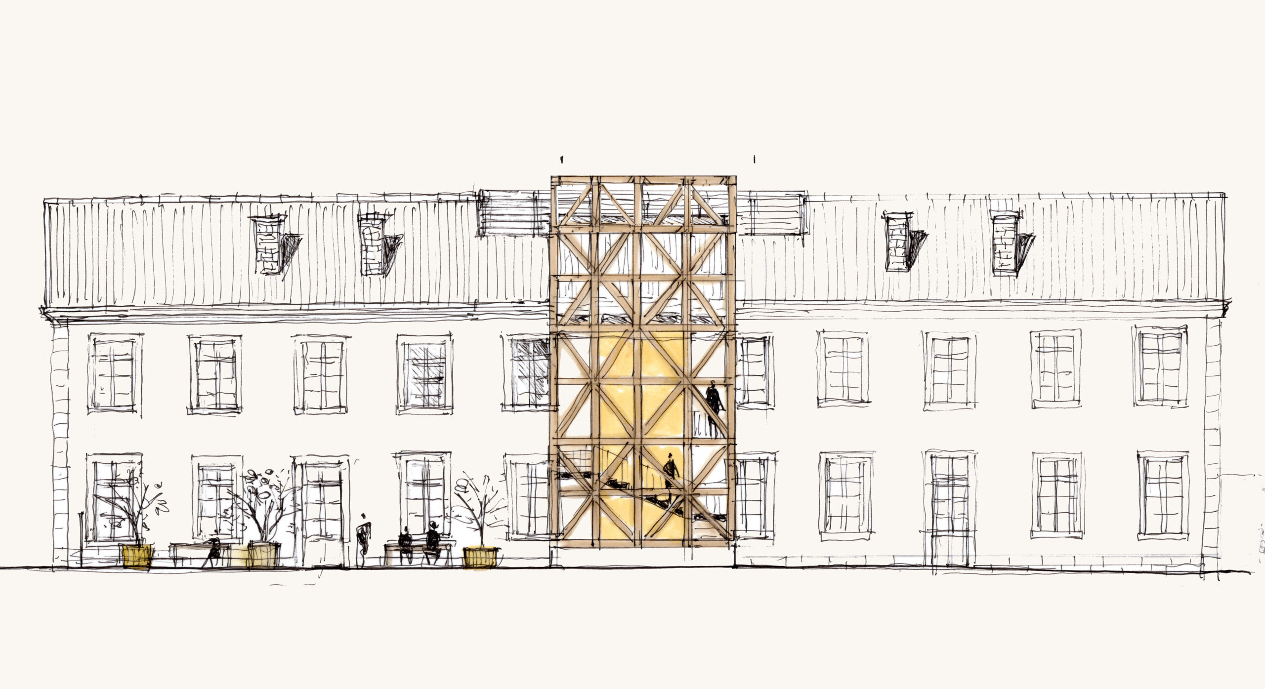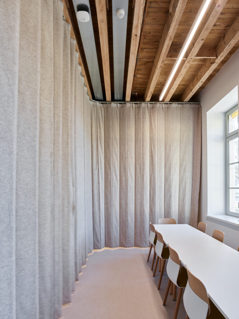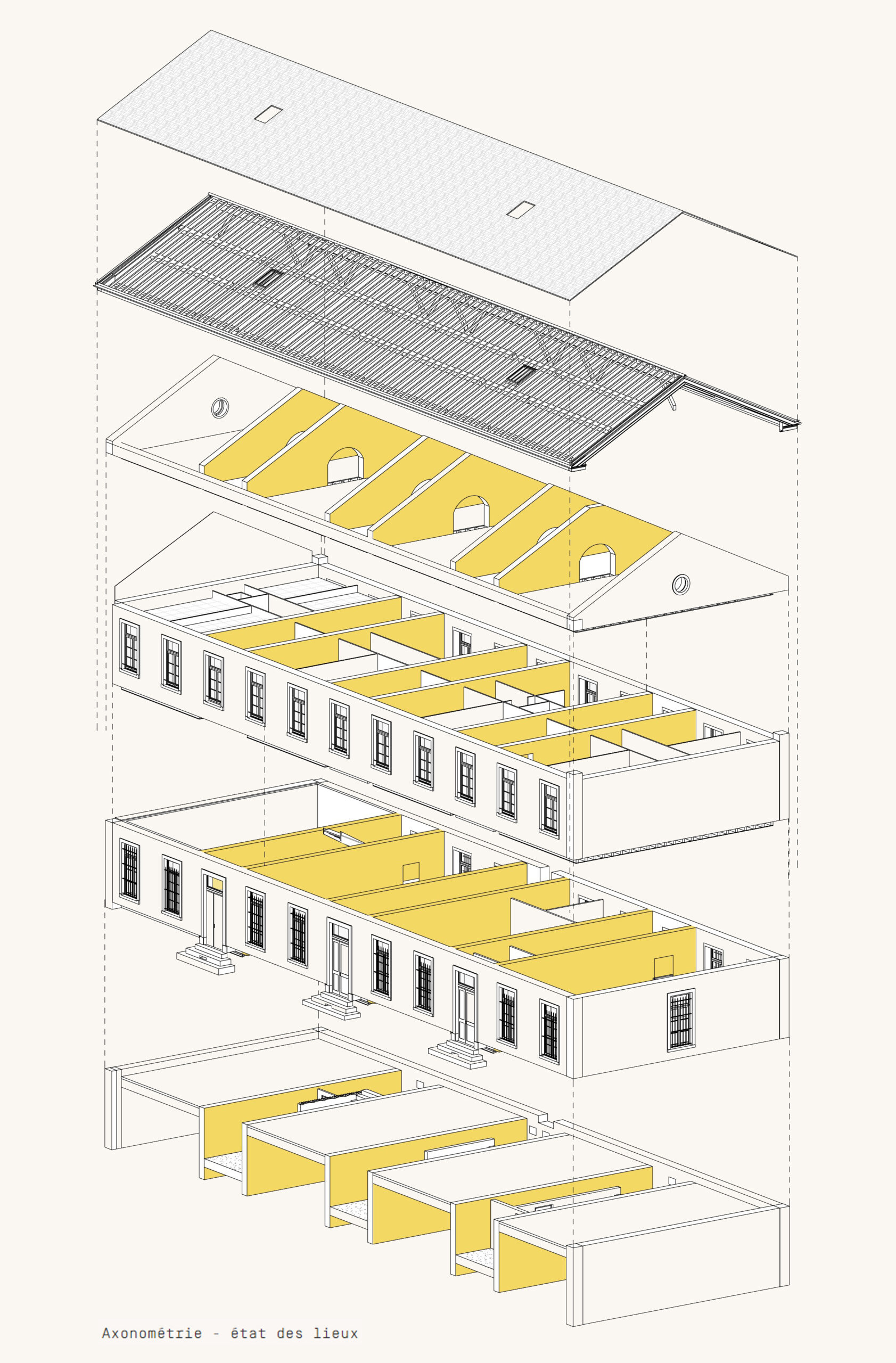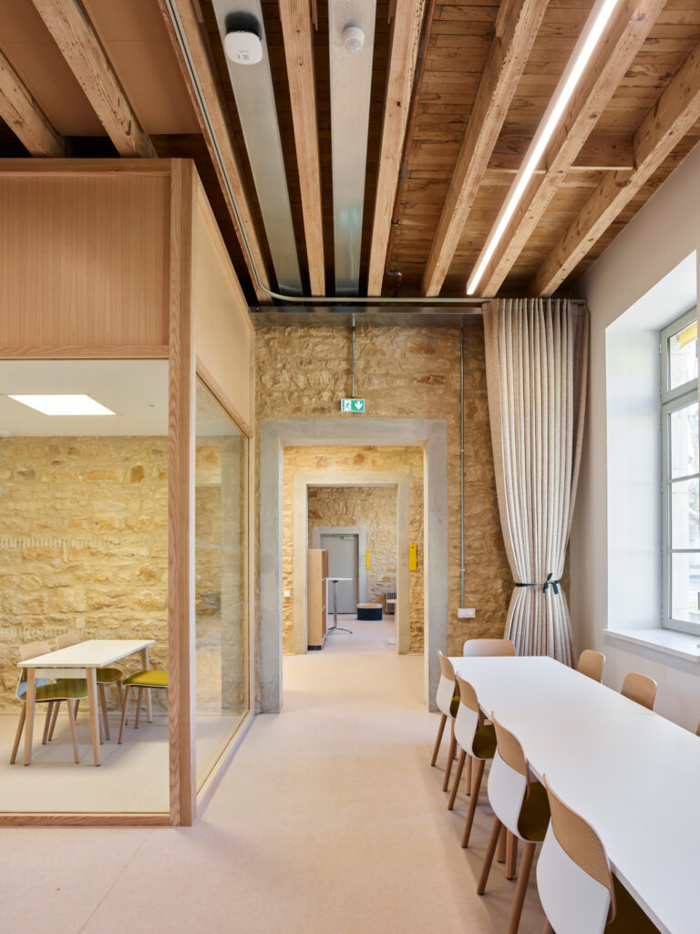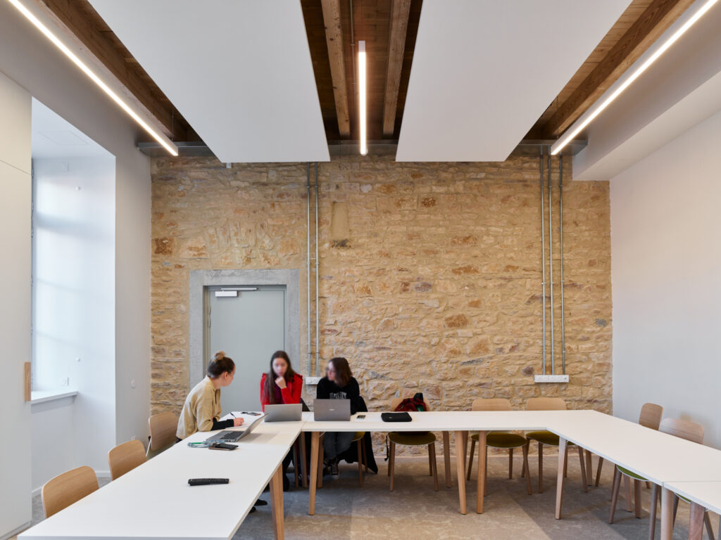 Ces échanges vertueux, alliés aux potentialités de l’ancien bâtiment 07, nous ont conduit à proposer une réhabilitation sobre, essentielle, réalisée au maximum à partir du déjà-là. Le bâtiment patrimonial est restauré, les façades historiques retrouvent leur modénature, à la fois dans les teintes et les matières. Face à la grande esplanade du parc, la Public Factory affirme fièrement, sobrement et sans faux semblant sa mutation d’usage, comme un lieu ouvert, au service du débat, de la créativité et de l’excellence.