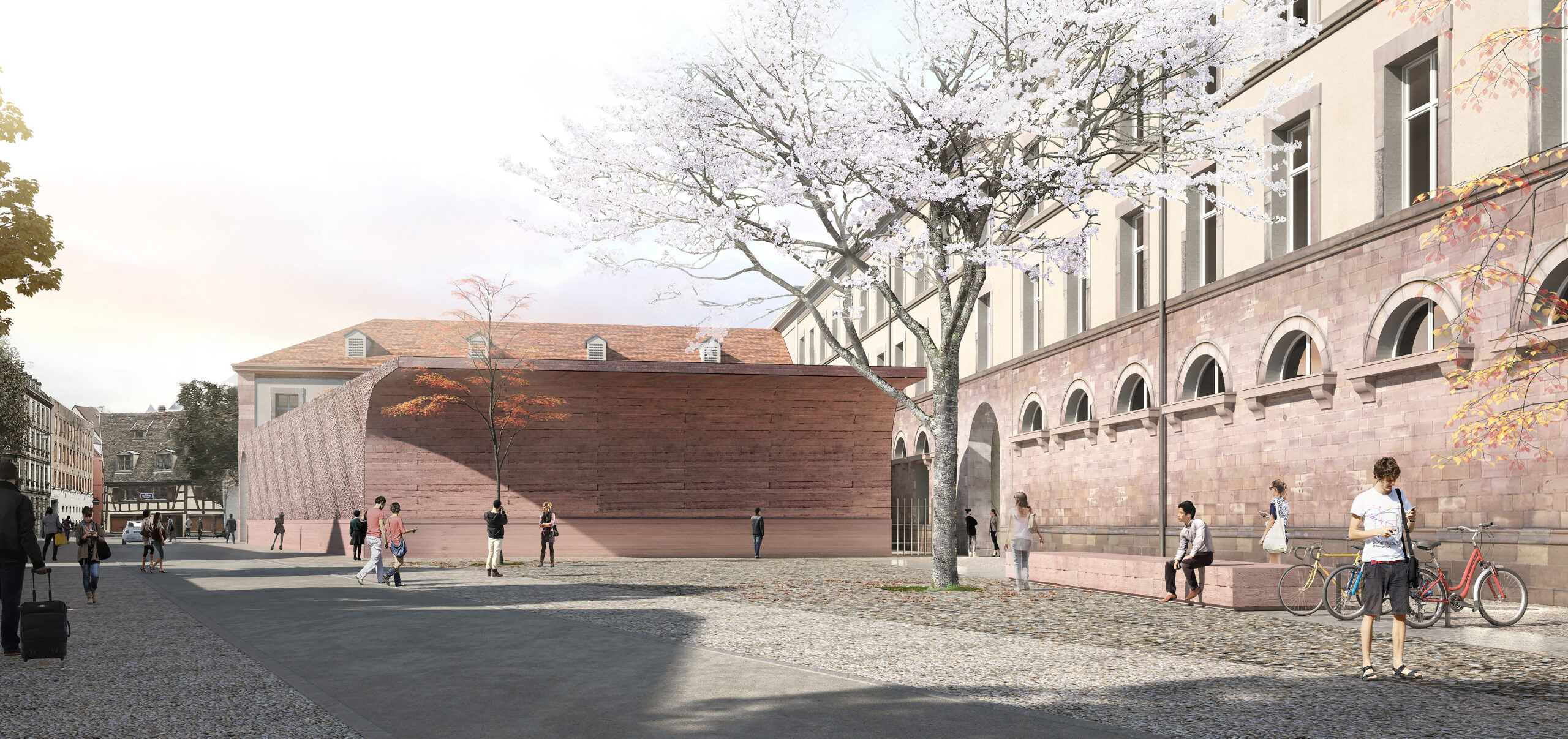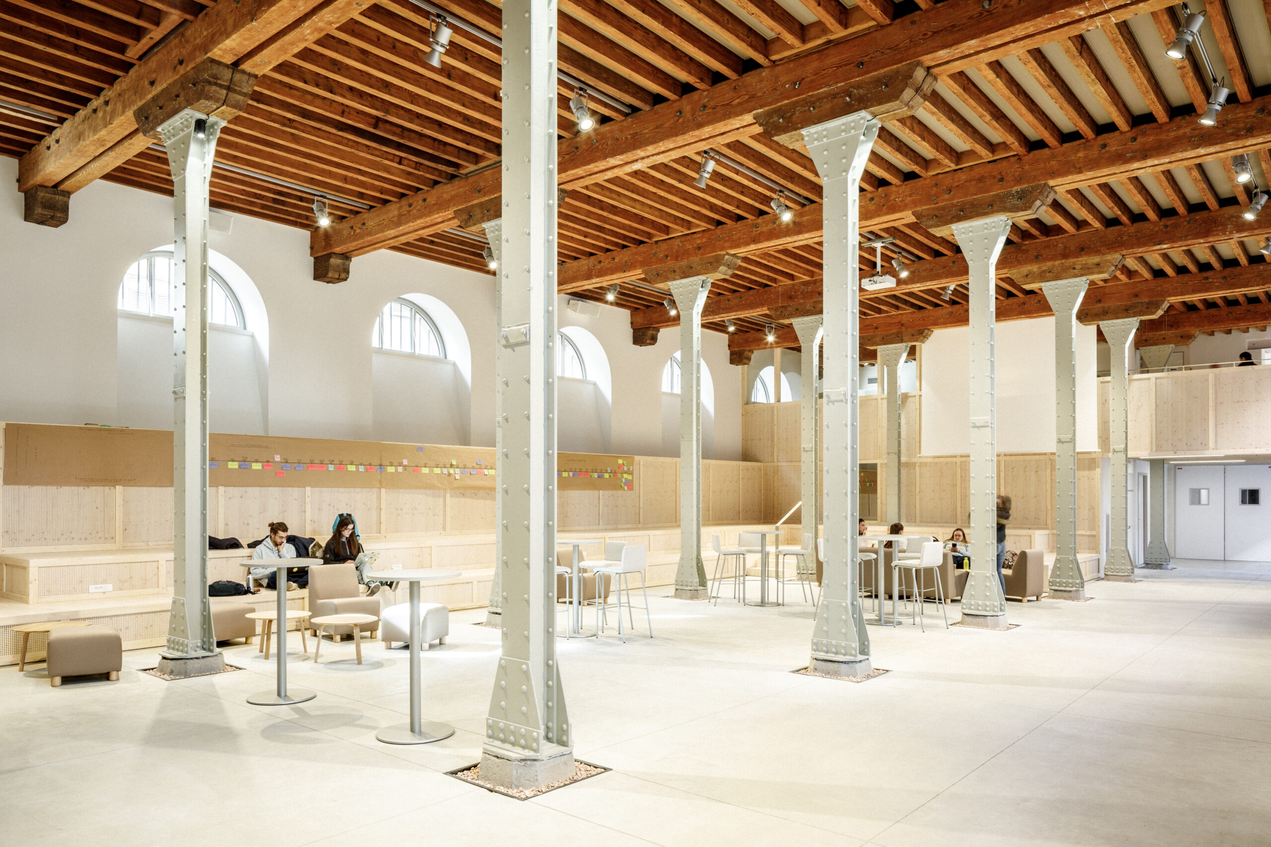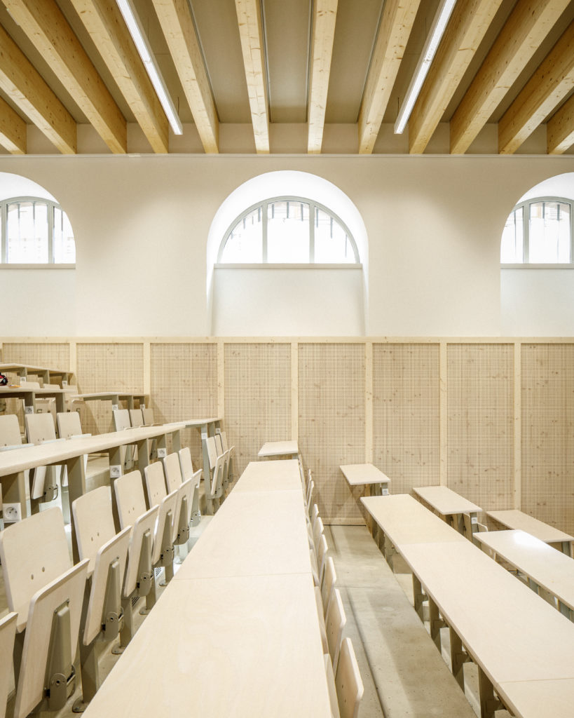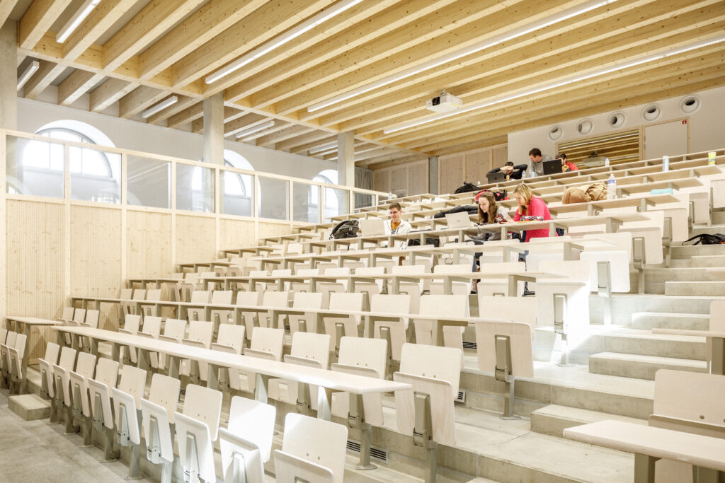 Dans le cadre de l’opération campus de l’Université de Strasbourg, le pôle d’excellence Géosciences, Eau, Environnement, Ingénierie (G2EI) a pris place au sein de l’ancienne Manufacture des tabacs, réhabilitée et agrandie. Ce pôle, qui occupe près de 11 000 m², accueille des formations dispensées par deux écoles d’ingénieurs : l’École nationale du génie de l’eau et de l’environnement (Engees) et l’École et observatoire des sciences de la terre (Eost), ainsi que d’autres pôles de recherche liés à ces thématiques. La mutation d’usage est venue s’insérer avec respect et douceur, s’appuyant sur l’organisation naturellement suggérée par les typologies structurelles des espaces existants. La Manufacture, conçue à l’origine à l’échelle des machines et de l’industrie, est aujourd’hui réhabilitée et transformée à l’échelle des étudiants et de la recherche.