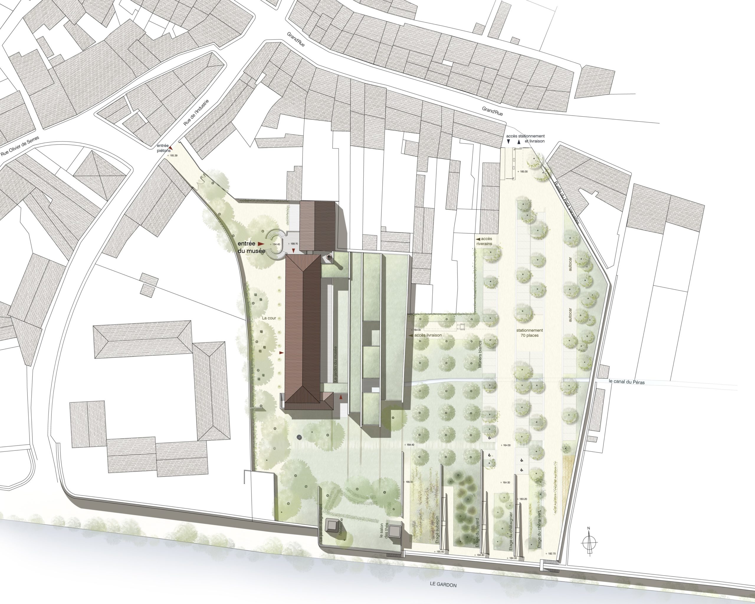 Au coeur des Cévennes, à Saint-Jean-du-Gard, le Musée des Vallées Cévenoles prend place dans la Maison Rouge, ancienne filature en brique, restaurée et agrandie. Né de passions croisées, infatigables et obstinées, ce sanctuaire de la mémoire des Hommes garde l’ambition, parmi les 10 000 pièces présentées, d’être un musée vivant ouvert sur la réalité d’une culture locale d’hier mais aussi d’aujourd’hui et de demain. S’inspirant largement du territoire, du sol, de la terre, de l’histoire, de la nature, des arbres, du paysage construit, des hommes, l’agence offre une interprétation contemporaine de son architecture vernaculaire.