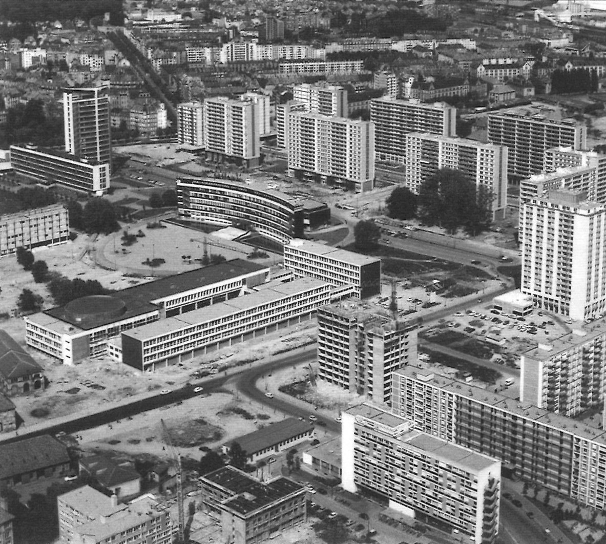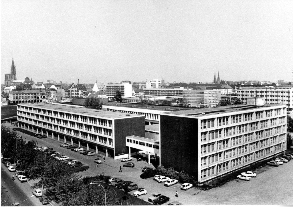 La ville et le milieu universitaire de Strasbourg n’échappent pas à ce phénomène : le nombre d’étudiants triple en 10 ans, passant de 5000 en 1954 à 16000 en 1965. Le Palais Universitaire, jusqu’alors réservé à quelques centaines de privilégiés, n’est plus en mesure de suivre la cadence. Son mode de fonctionnement autarcique, autant que son architecture d’apparat, sont devenus obsolètes, trop élitistes, incompatibles avec les nouvelles méthodes d’enseignement et les effectifs croissants d’étudiants.