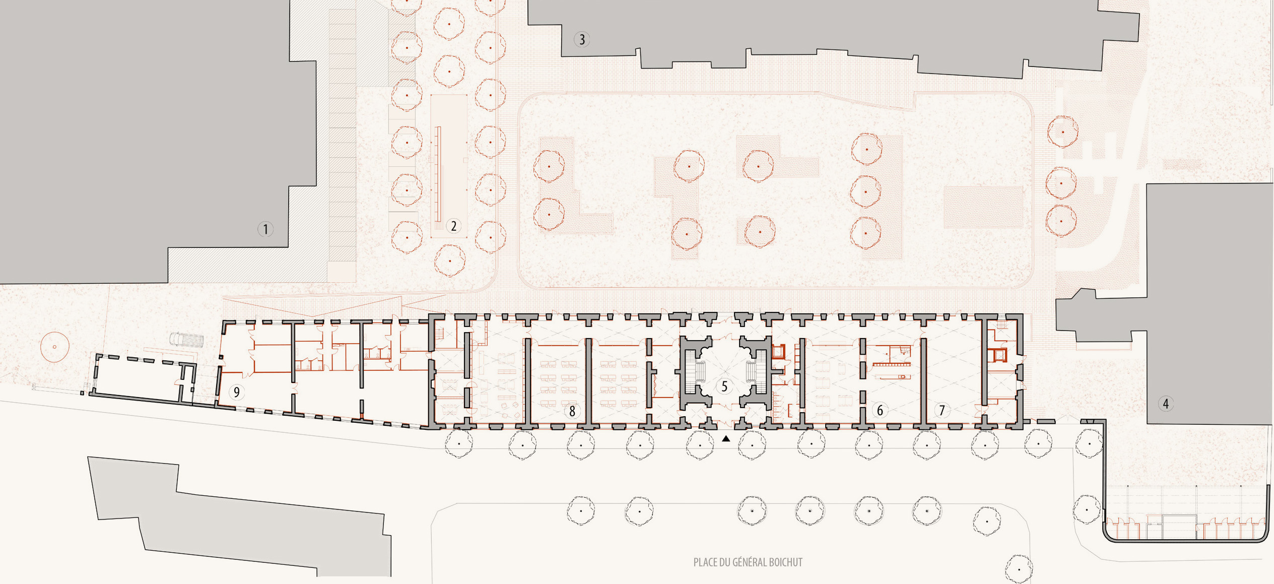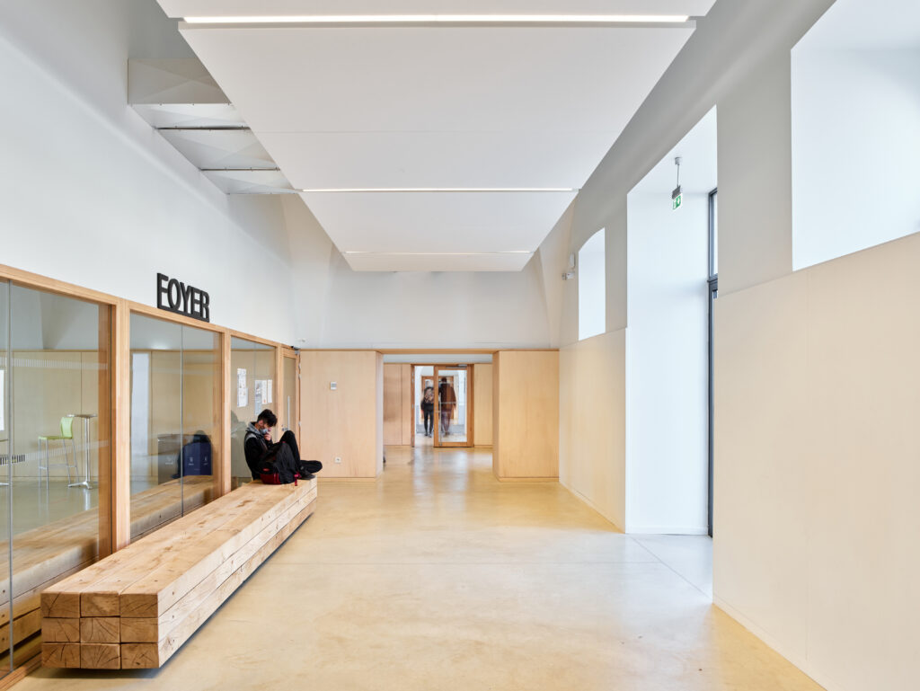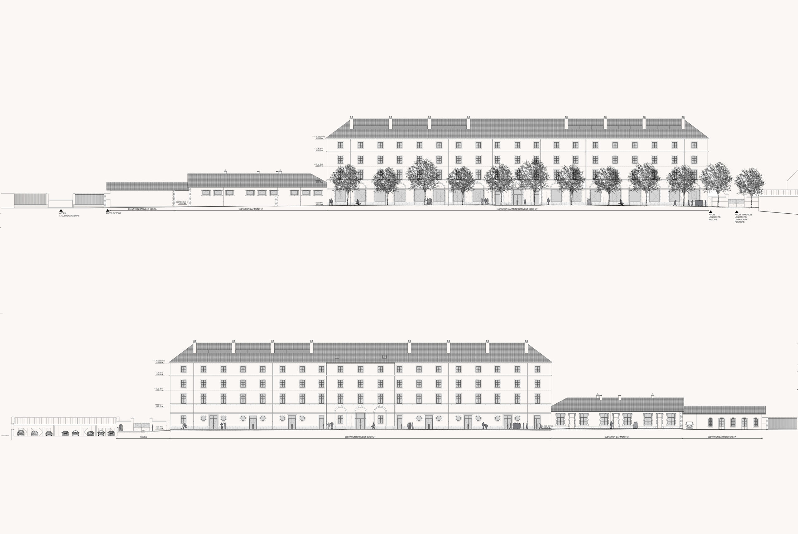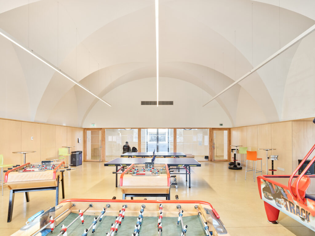 L’ancienne caserne de la cavalerie des 12ème hussards, construite à la fin du XVIIème siècle par Louis Aubert, est aujourd’hui occupée par le lycée professionnel Henri Fertet. Le projet de restructuration du lycée s’inscrit dans un ensemble bâti ancien à forte valeur patrimoniale, dont la façade principale compose l’ancienne place d’arme devenue la place du Général Boichut. Si cet ancien site militaire a subi de nombreuses modifications au cours du XXème siècle pour accueillir une gendarmerie puis un centre d’apprentissage devenu le lycée actuel, le bâtiment principal d’entrée sur lequel s’est concentrée notre intervention a été relativement préservé, pour conserver encore aujourd’hui son identité militaire en lien à l’ouest avec son ancienne place d’arme.