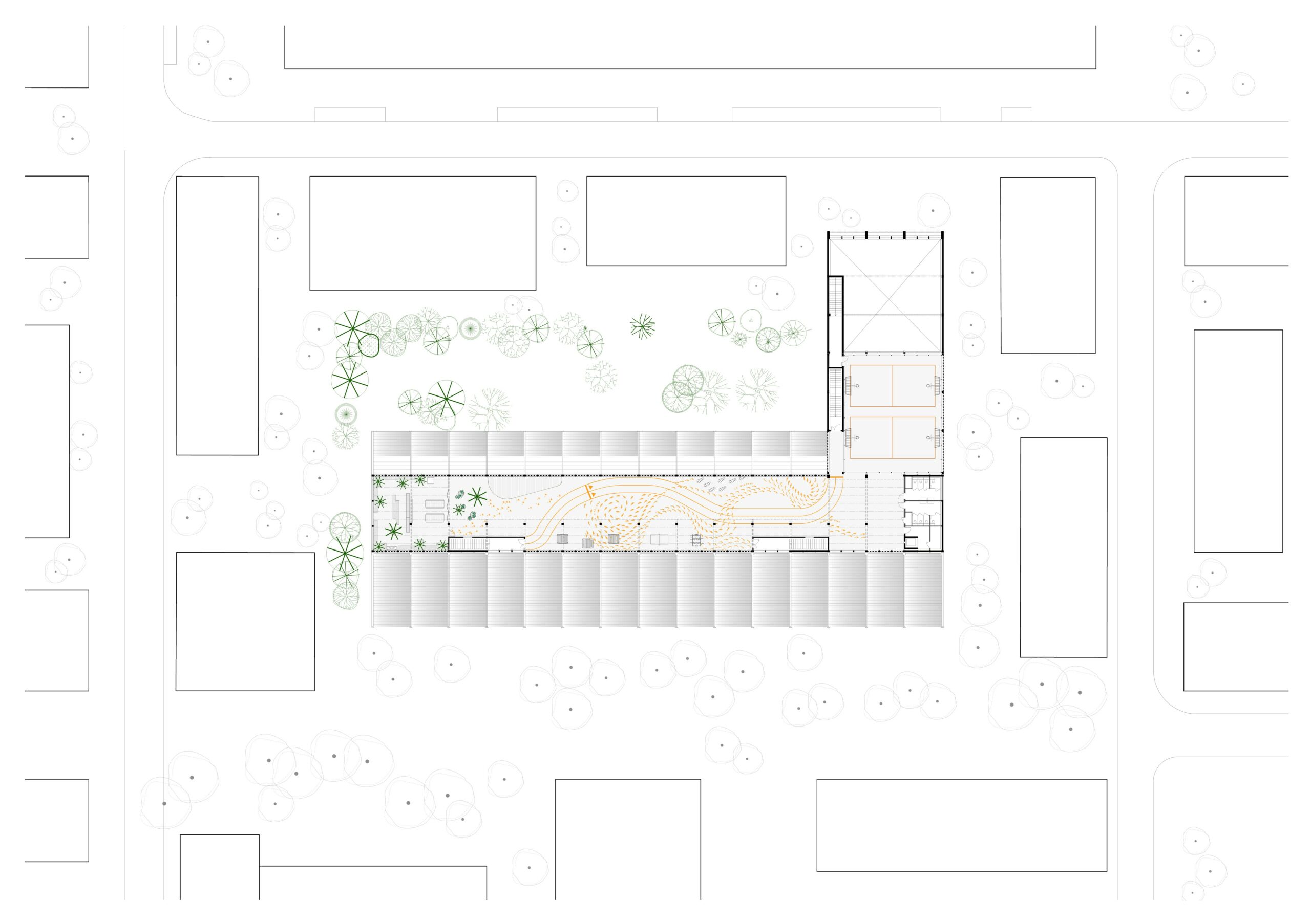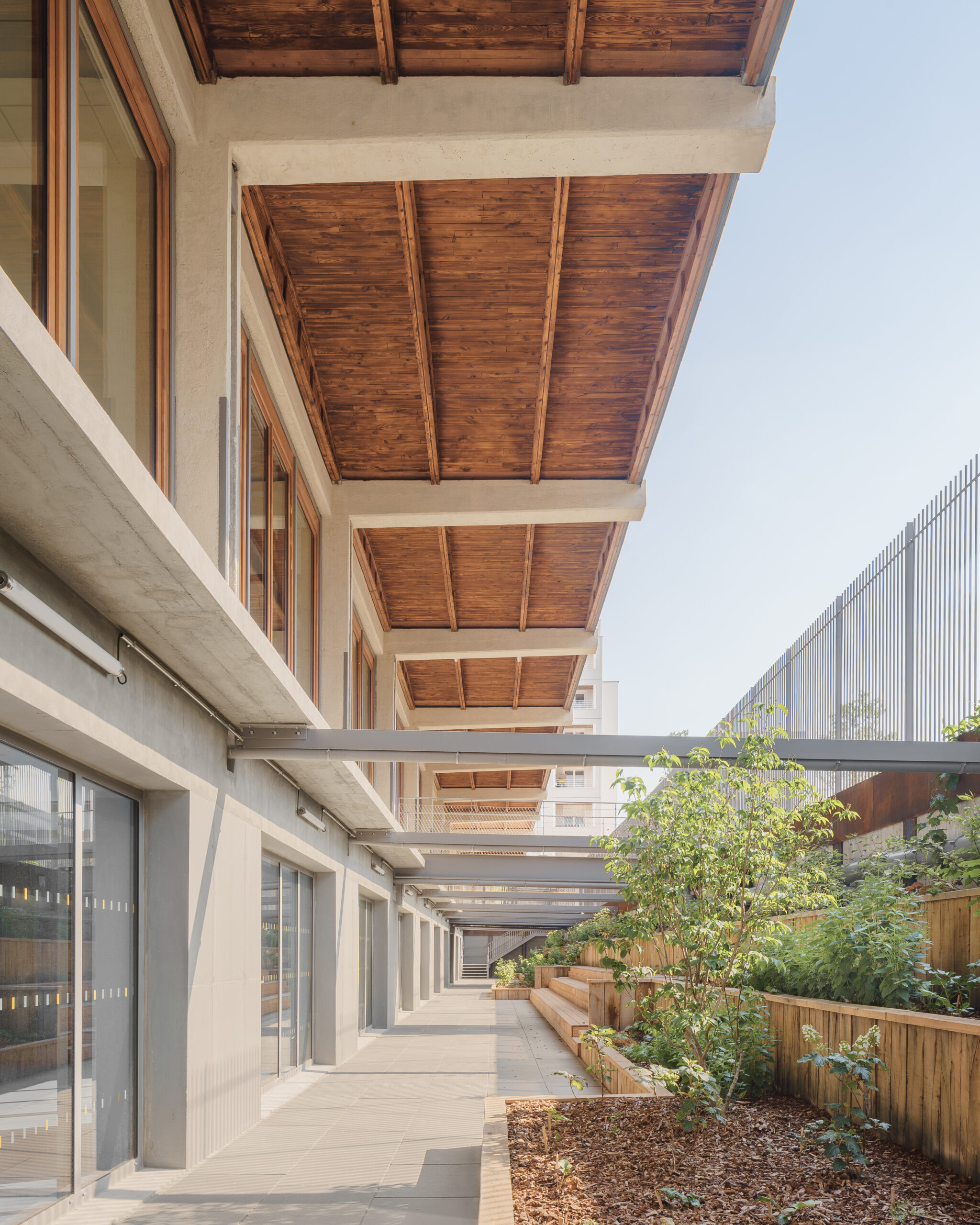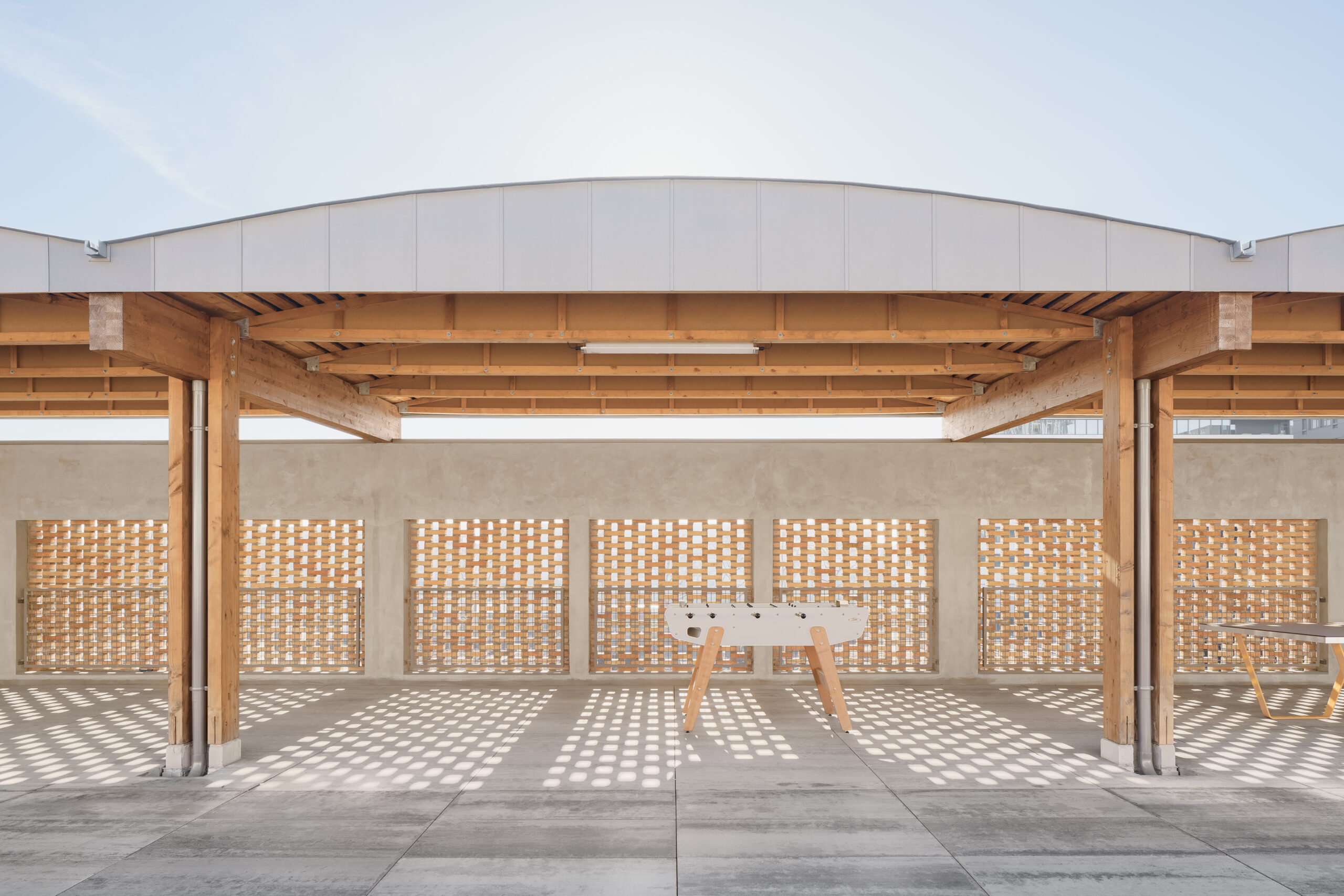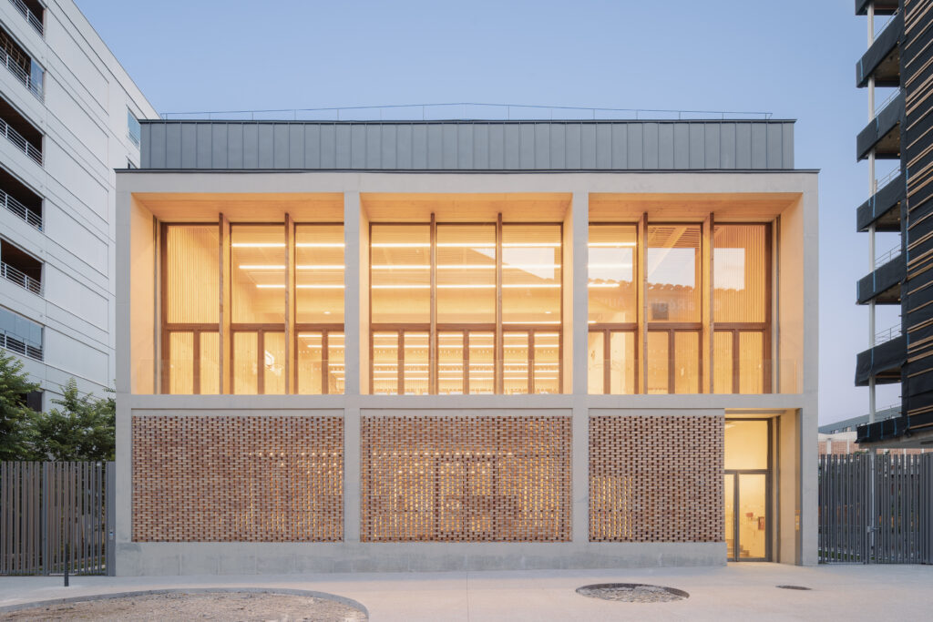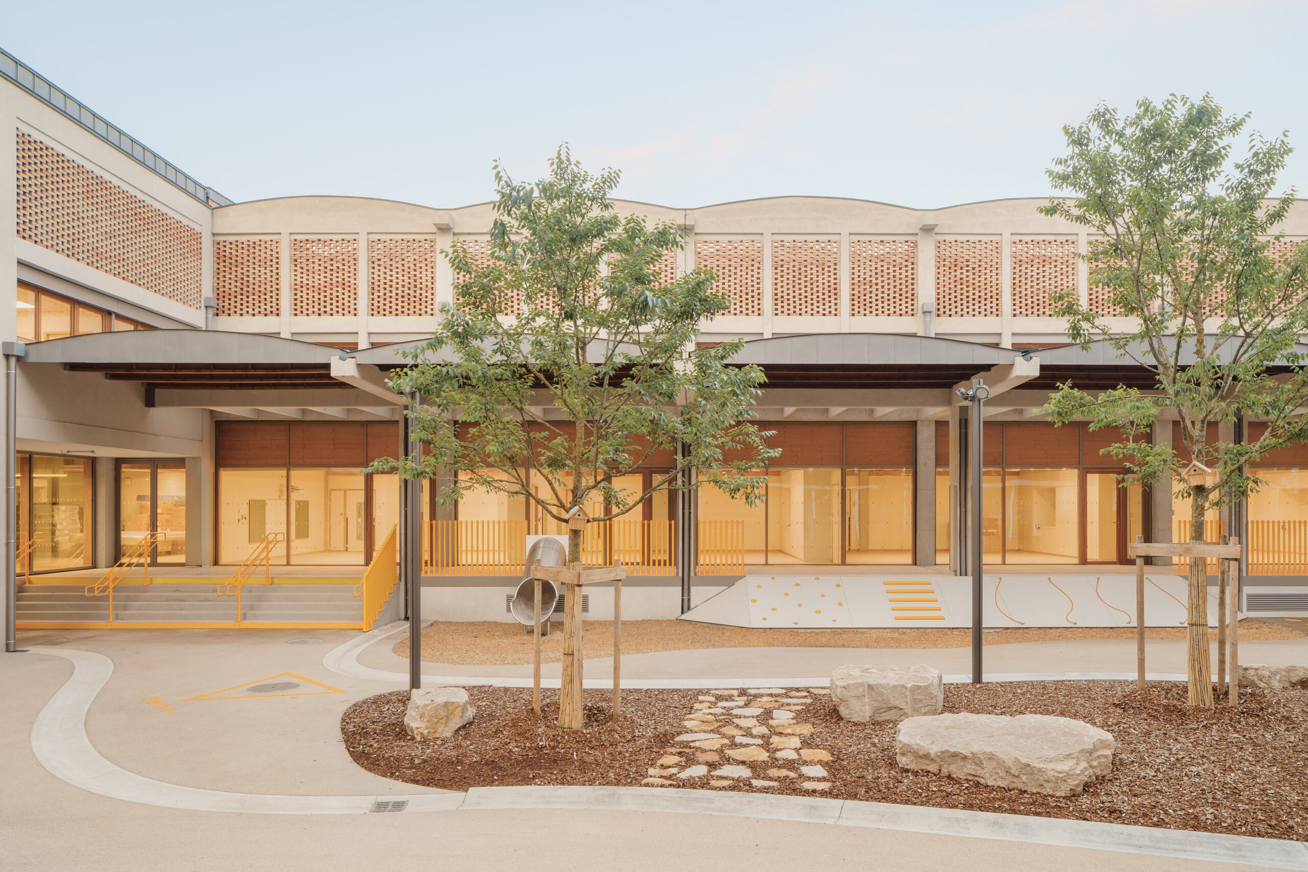 Au cœur du quartier de la Confluence, à Lyon, un nouveau groupe scolaire et une crèche sont venus se glisser dans une ancienne halle de marché de gros. En écho à ses usages passés, l’école porte désormais le nom d’une célèbre mère lyonnaise, Eugénie Brazier. L’ancienne halle propose des usages aux antipodes de sa conception initiale. Pourtant, une continuité s’est dessinée dans ce patrimoine de la Confluence. Celle d’un lieu foisonnant, où le bouillonnement des stands et camions de marchandises est remplacé par celui des jeunes enfants qui évolueront désormais dans un cadre d’apprentissage à leur échelle, où le paysage a fait son entrée.